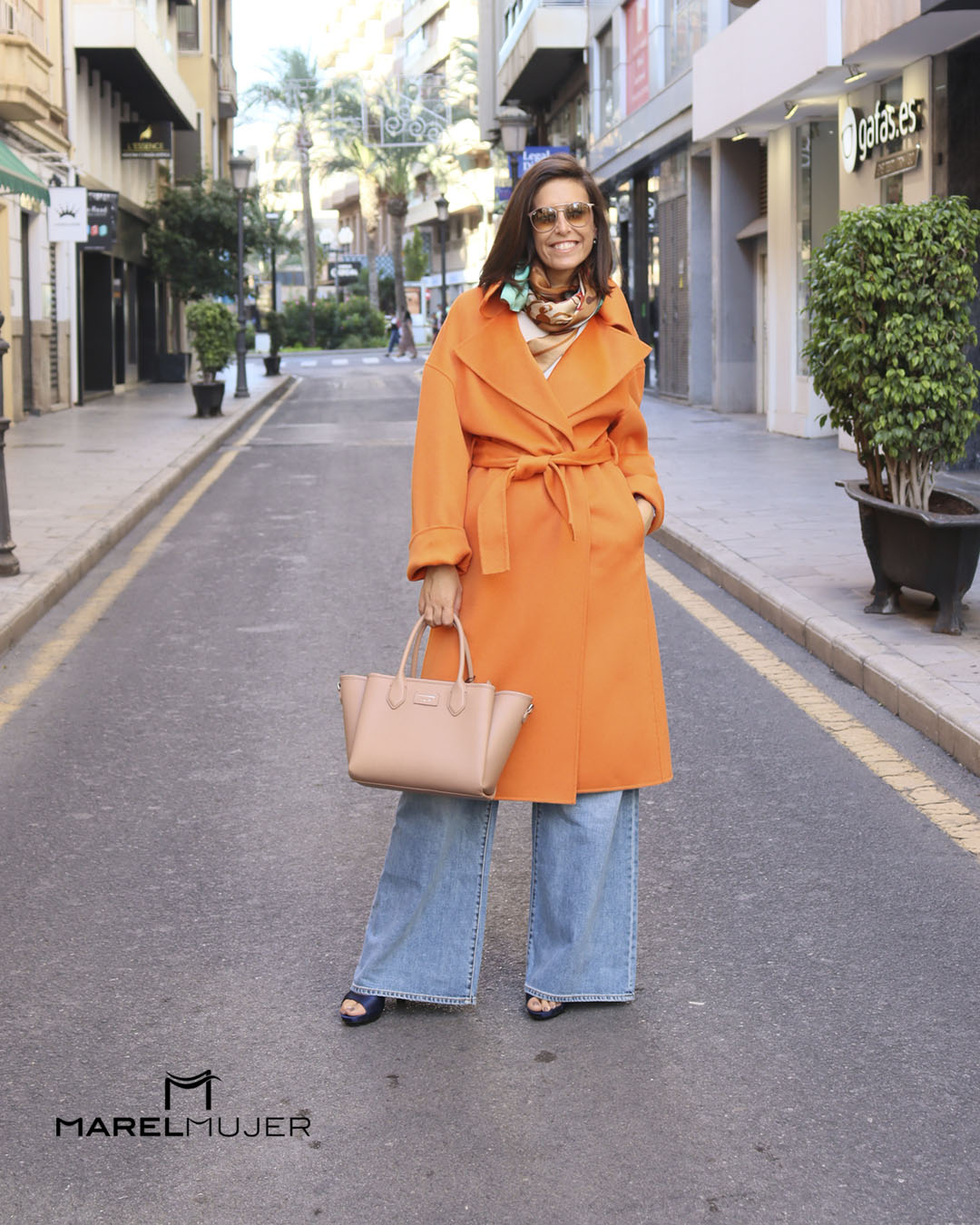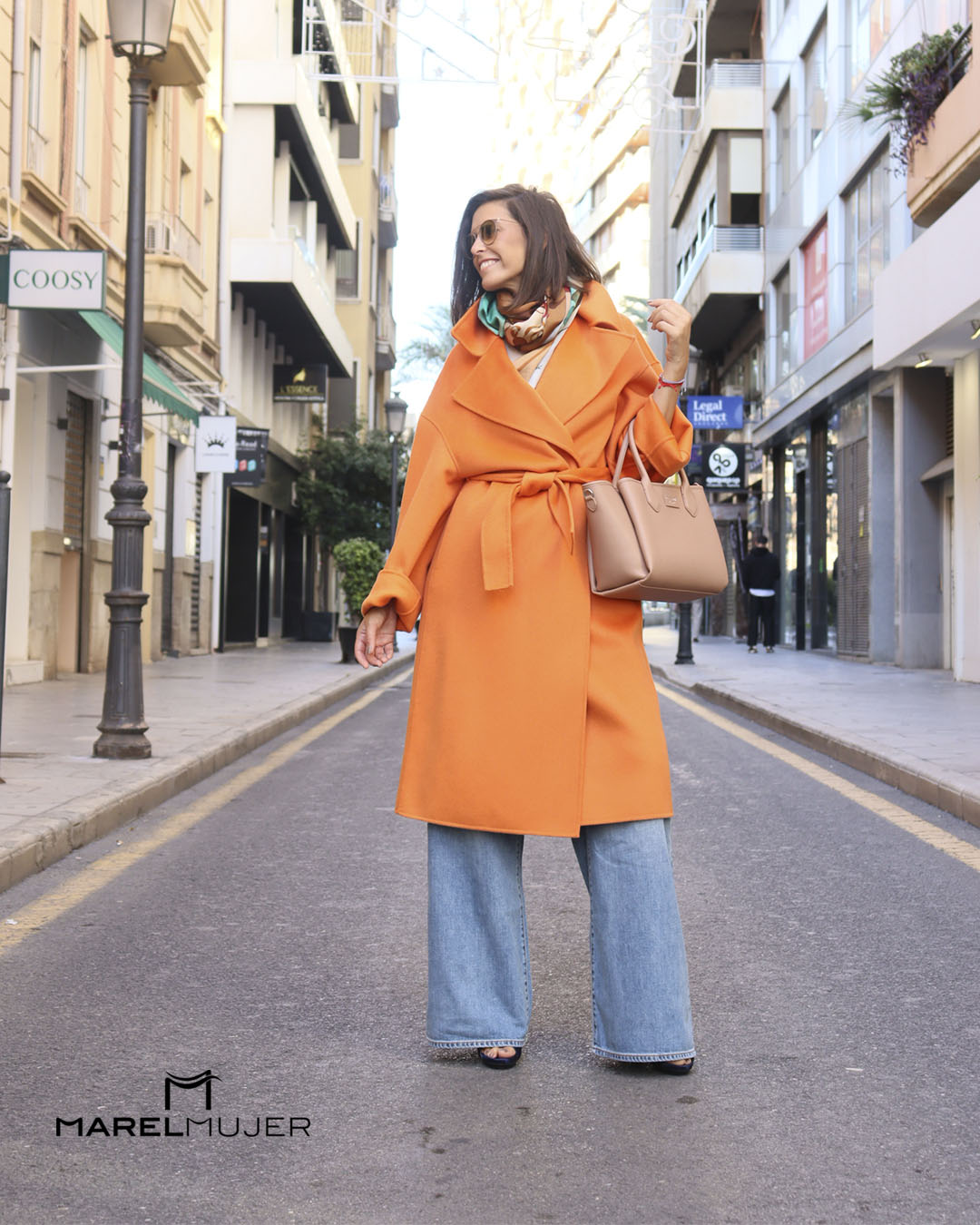 Abrigo largo de lana en color Naranja