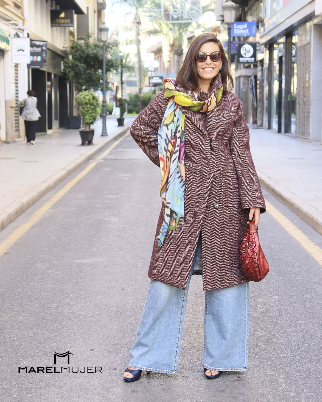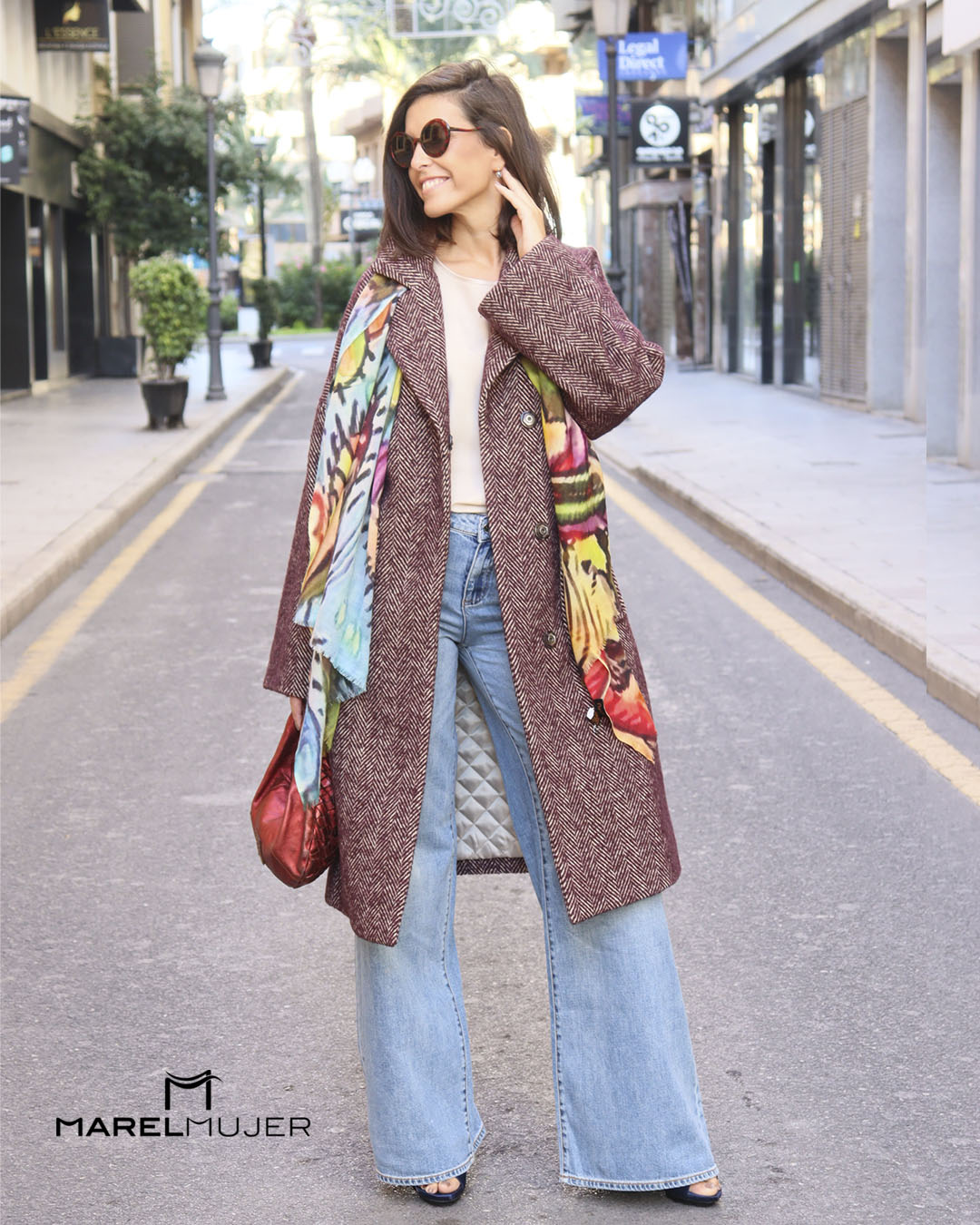 Abrigo largo de chenilla en tonos marrones