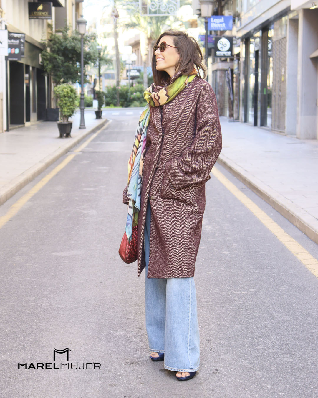 Abrigo largo con estampados de espigas en color granate