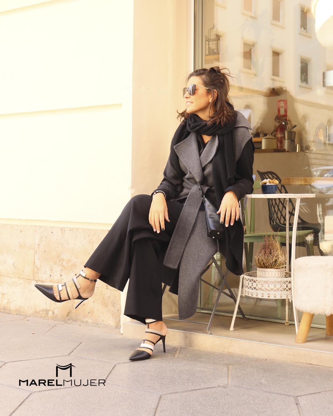 Abrigo largo sin mangas estilo chaleco de lana con cinturón