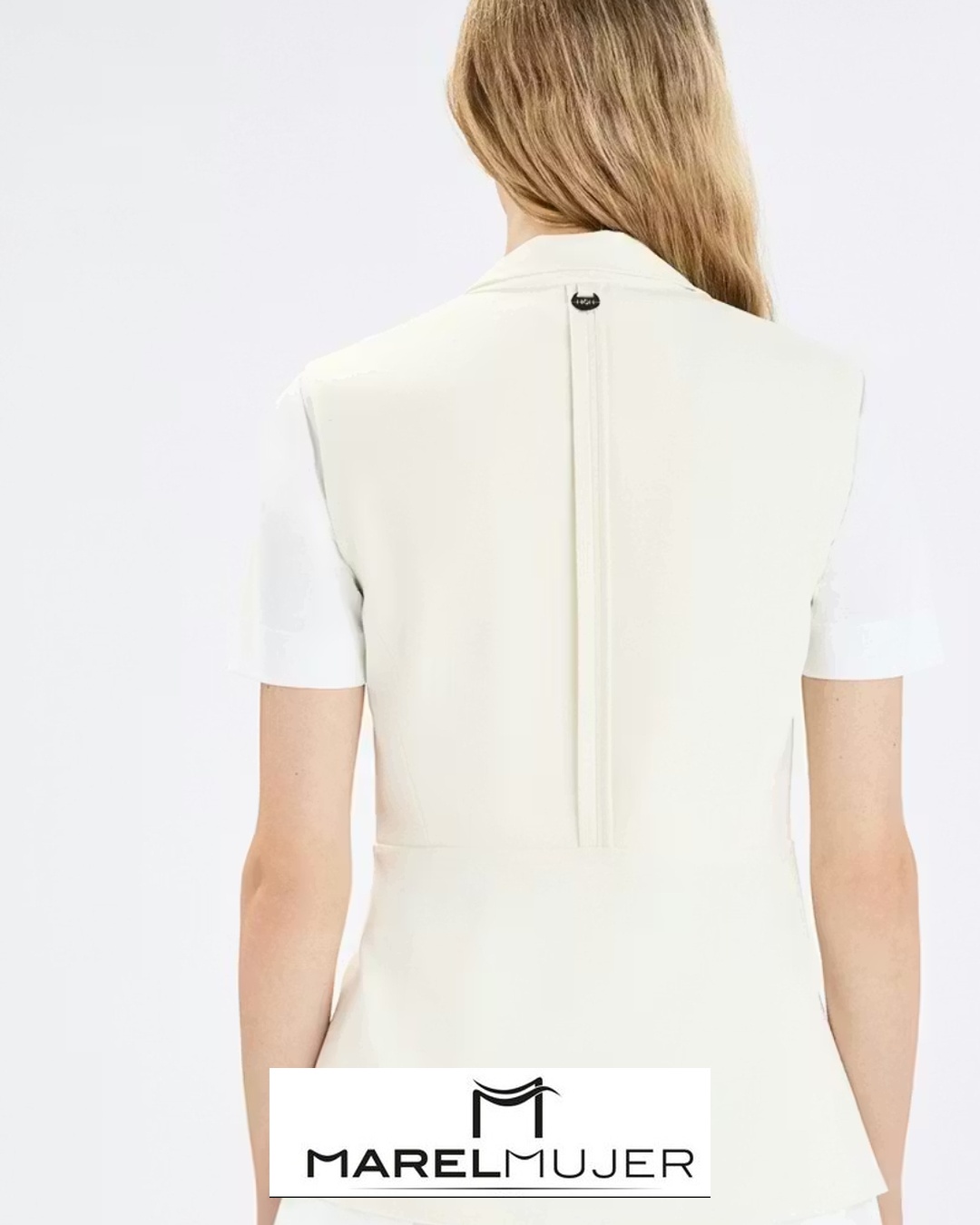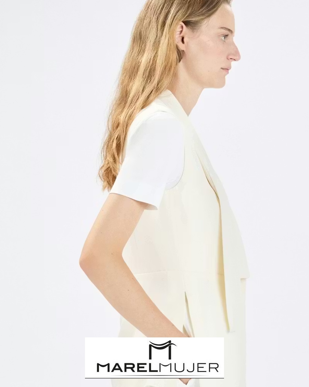 Chaleco en blanco roto con posibilidad de lazada en cuello de HIGH