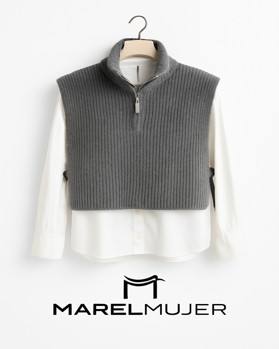 Chaleco de Cashmere en gris con aberturas laterales y cremallera en cuello