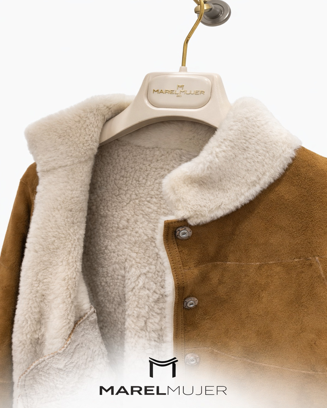 Chaqueta doble faz cropped en tono camel con interior en pelo blanco