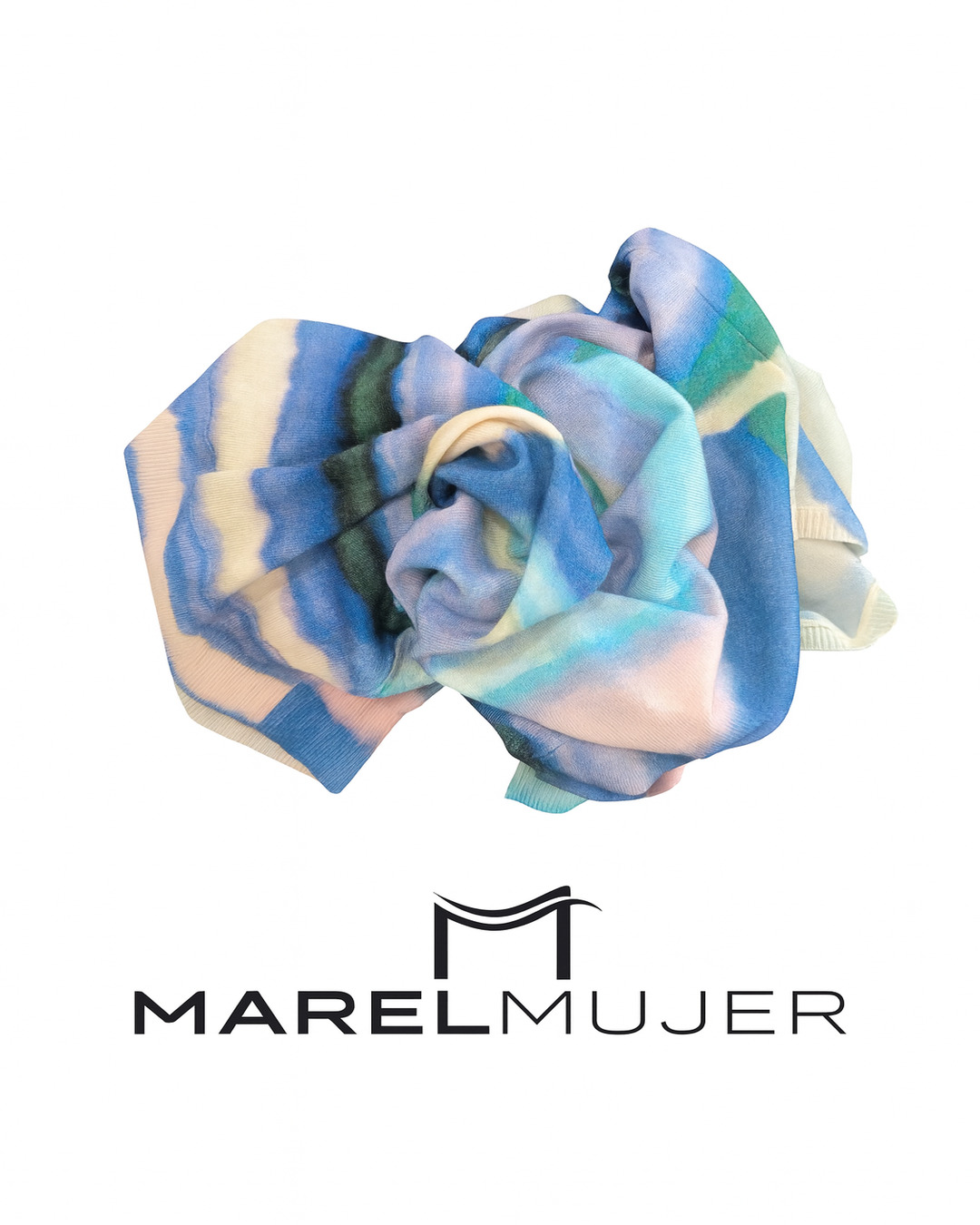 Jersey cuello pico de rayas en tonos azules de lana merino
