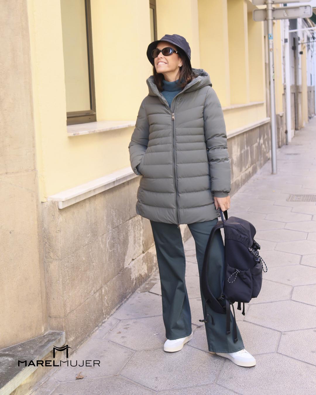 Plumas largo en color verde con capucha , formas elegantes , tejidos técnicos. Diseñada para elevar tu estilo con prendas de abrigo que combinan sofisticación y practicidad . Caracterizadas por una estética contemporánea.