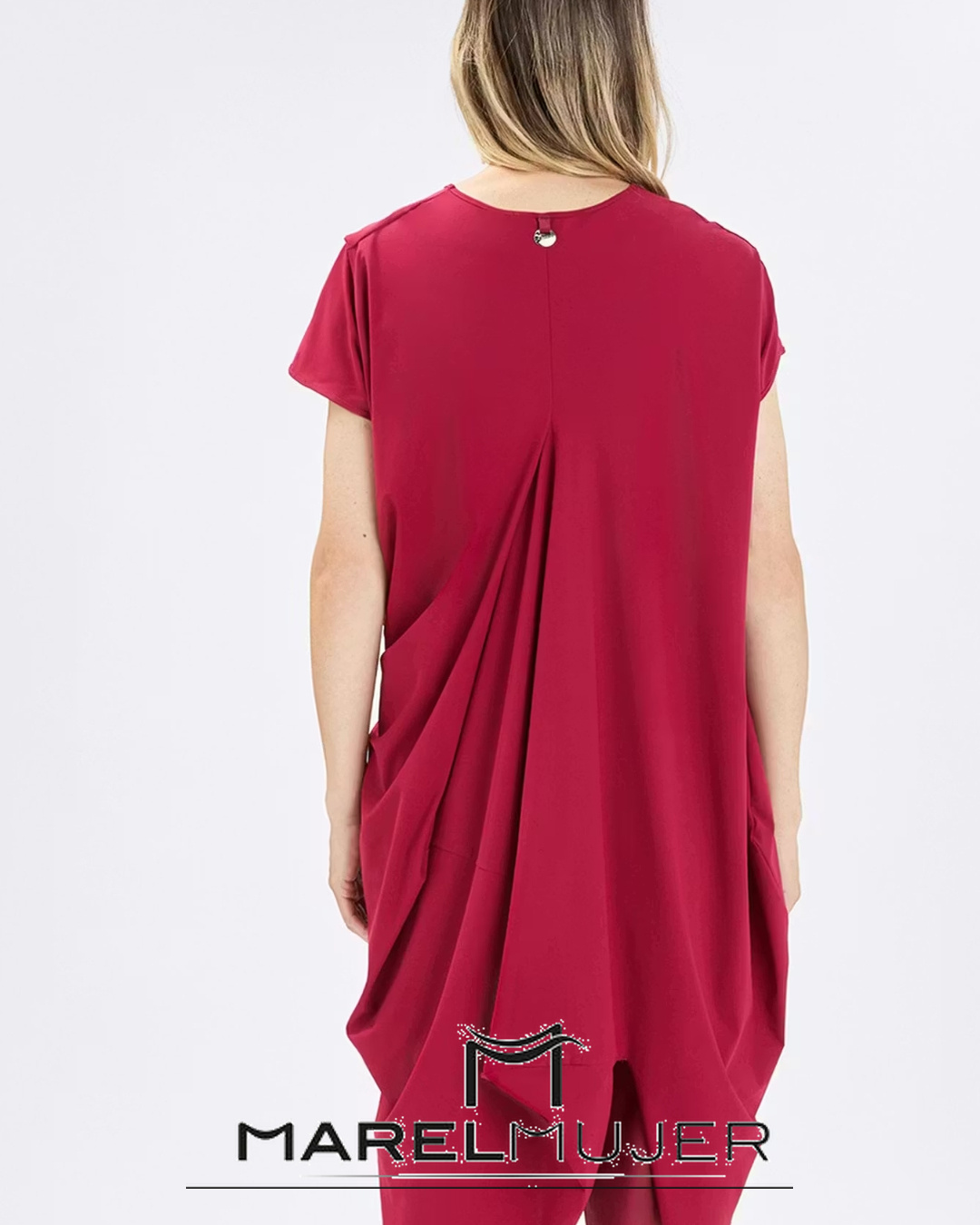 Vestido corto asimétrico con frunce en la parte delantera , color burdeos de HIGH