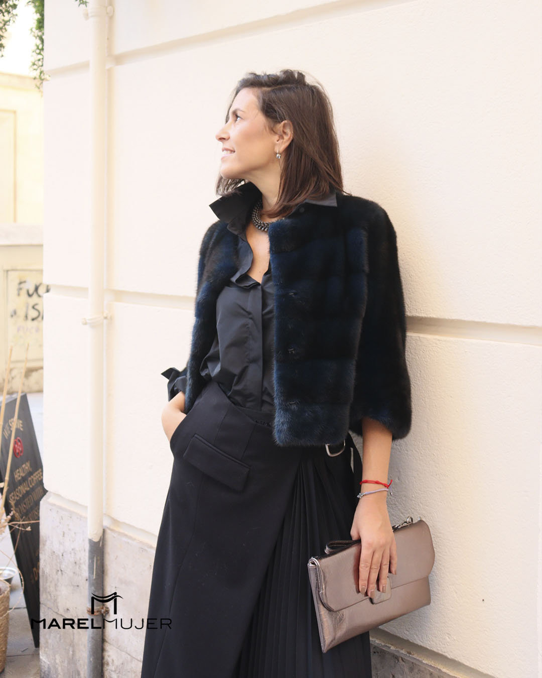 Visón corto en tono azul oscuro